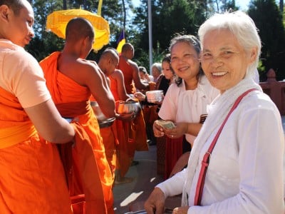 A Snellville based Laotian monk who lost his leg in the Walk for Peace, is back home and local residents are eager to embrace him, and his message