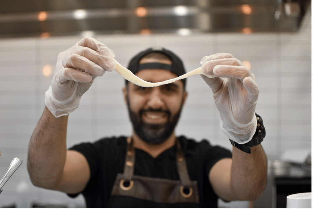 Plenty of people crave ice cream, of course. But Salem had a more specific need—the kind of ice cream served in Ramallah, Palestine, which he remembered from childhood visits with his family. Like Turkish ice cream, Palestinian ice cream is made with mastic, a resin extracted from a tree traditionally grown on the Greek island of Chios. It gives this kind of ice cream—booza in Palestine, Syria, Lebanon, and Jordan, dondurma in Turkey—a distinctive texture. “You chew it like three, four times before it melts,” Salem says. You can hold a piece of it in your hands and stretch it like gum. There aren’t many places in the United States where it’s sold.