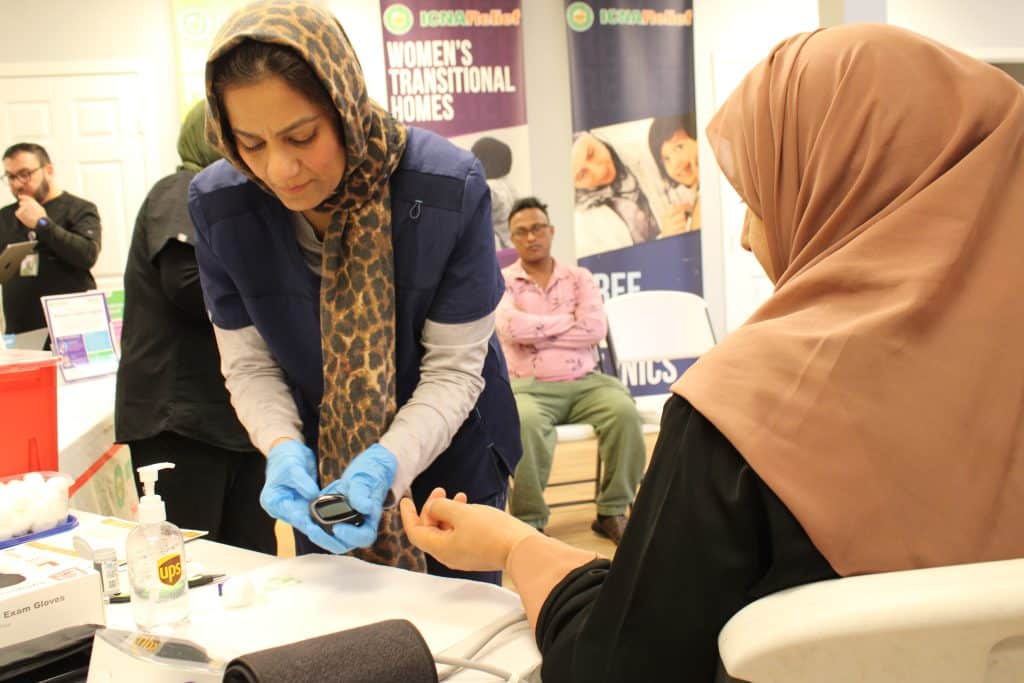 It’s Friday afternoon just after 3 p.m., and the ICNA Relief food pantry on Memorial Drive is officially open. For the next three hours, people stream in and out of the small white building, located beside a Caribbean cafe and a window-tinting shop. Some are picking up grocery boxes—filled with nonperishable foods like rice, navy beans, and canned pears—while others are volunteers, there to check people in, stock boxes, or run blood sugar checks at a makeshift health clinic that’s also a part of the food pantry.