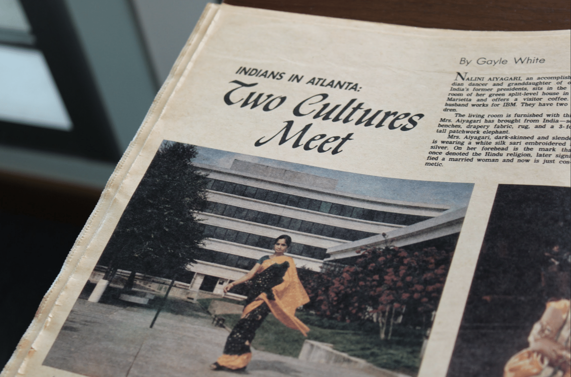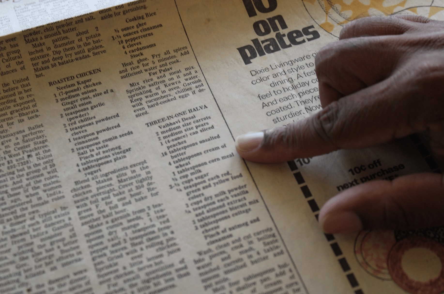 Gautham and Chella are also collecting community media—they have stacks of Khabar magazine, including the first-ever edition—and even have clippings from the first time the Atlanta Journal-Constitution ran a big cover story on Indian Americans, in 1975. Gautham pointed to one section of the article listing the ingredients you can buy from an American grocery store to make halva. “If you look at the ingredients that are in this halva, there’s canned peaches, cornmeal, and cottage cheese.”