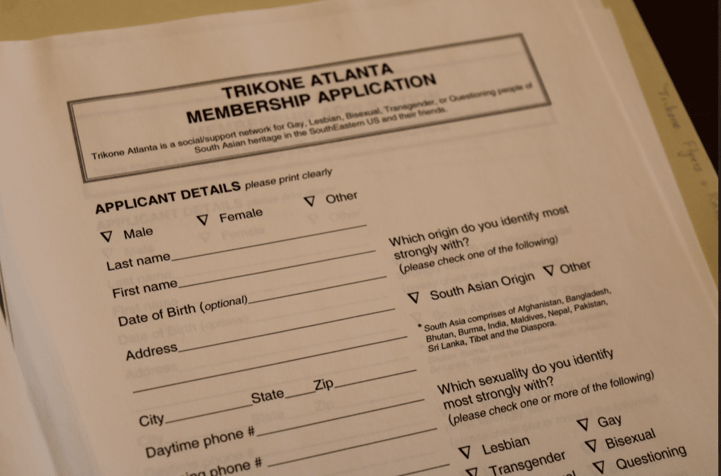 Another part of the archive, said Gautham, walking over to stacks of papers and newsletters, is the Trikone collection. Atlanta was home to one of the first chapters of Trikone—an organization for South Asians who identified as LGBTQ. “Atlanta, of course, is a big hub for LGBT activism, and it’s called the gay capital of the South,” he said. “And so there’s this neat intersection, because it’s also a big hub for Asian American communities.”
