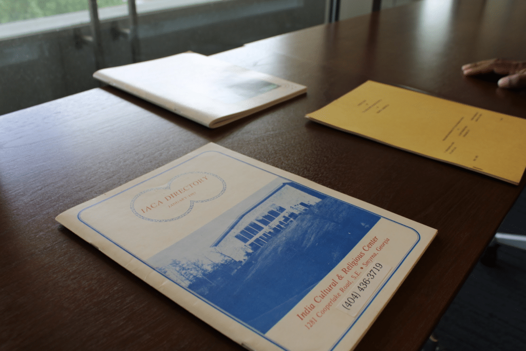 At the Rose Library in June, Gautham and Chella had carefully laid out some of what they’ve archived so far: Along with phone directories from the IACA as well the Telugu Association of Metro Atlanta directory, there’s a 1983 proposal for an Indian community center, and program booklets from the annual Festival of India.
