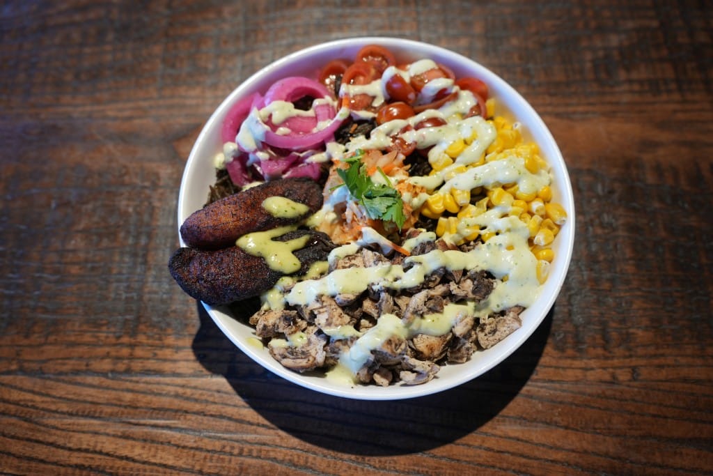 The menu features childhood favorites with slight changes. For instance, the djon djon rice, a black rice made with water that’s been used to boil Haitian djon djon mushrooms: It’s usually served on a flat plate with a protein, plantains, and other toppings, but Zeke serves his in a bowl—to appeal to the current American fad for grain bowls. “That’s the part where it’s not as traditional, but it’s traditional from the root because it’s coming from me and it’s my thoughts and my ideas,” Zeke said.