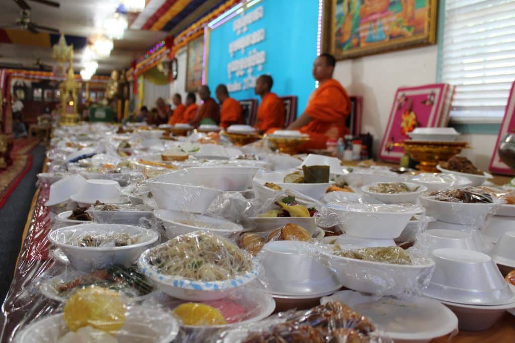 The rituals of Pchum Ben last for over two weeks, including individual days that families reserve at the temple to honor loved ones who have passed, giving alms to the monks, chanting, praying, and cooking food to place into small bowls as offerings.