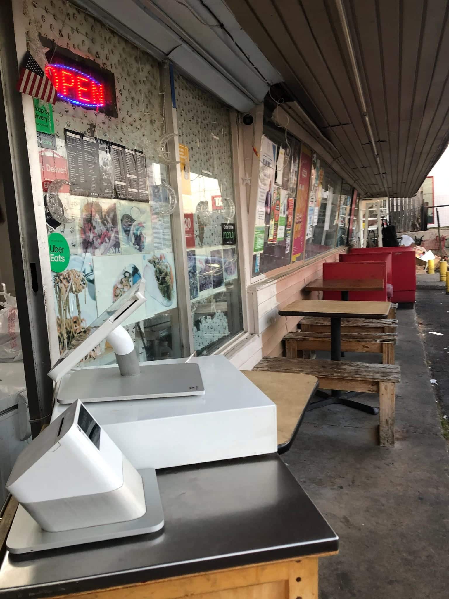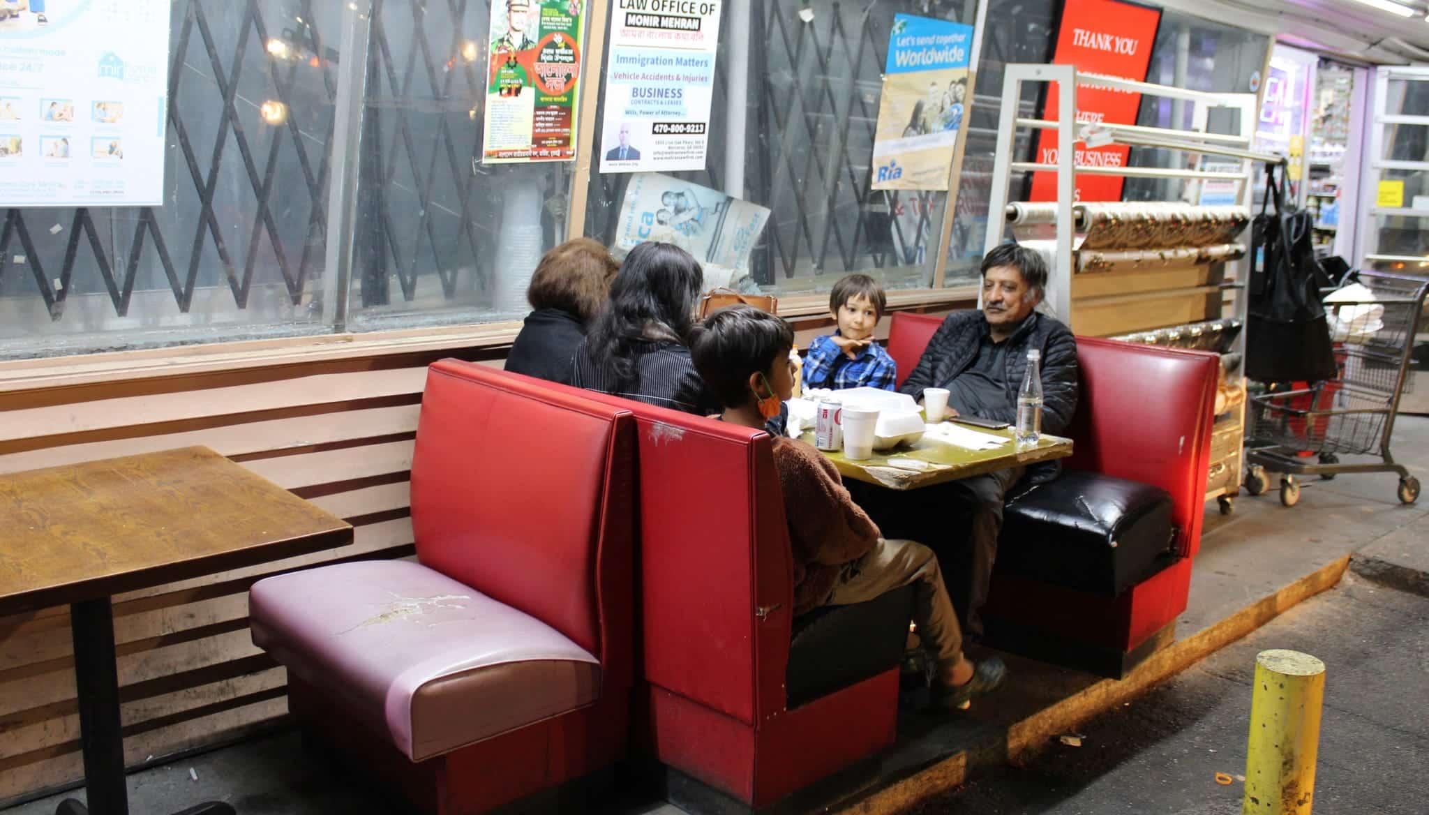 After over an hour hanging out at our booth, we gathered our empty takeout containers and threw them in the trash. Nowshed stood at the front, looking out into the parking lot, facing Buford Highway.