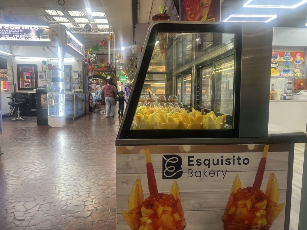 María estaba de pie detrás de una vitrina, observando la feria de comida casi vacía de Plaza Fiesta. A su lado había una pantalla grande con publicidad llamativa que decía: “¿Listo para hacer crecer tu negocio?”. La joven de 28 años ha trabajado en el centro comercial latino durante los últimos cuatro años, pero 2025, dijo, no se ha parecido a ningún otro.