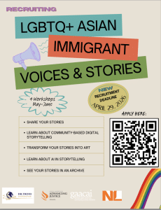 The Georgia Asian American Community Archive Initiative (GAACAI), along with community partners, is recruiting participants to collaborate in a series of workshops that focus on highlighting the stories of Atlanta’s LGBTQ+ Asian Immigrant Community.