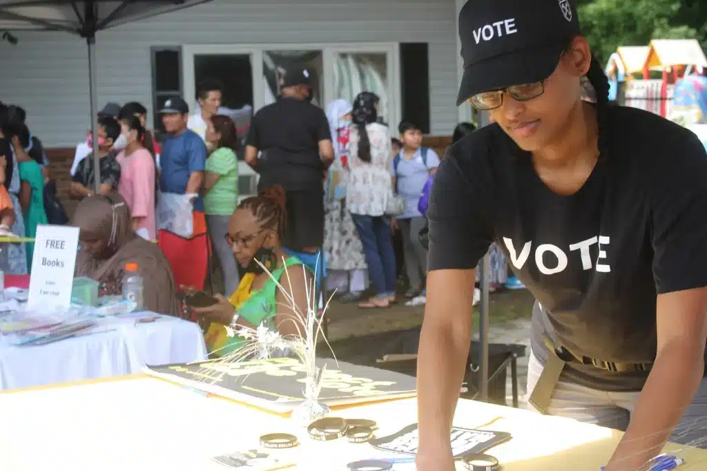 Typically, one of the biggest challenges to voter engagement, she said, is the language barriers. Hannah speaks Amharic and Tigrinya, which helps, but on Saturday, she said the language support was phenomenal. “At this event, they have translators from 10 different languages…that’s not a privilege that we have at every event we do. I think we need more of them – more translators, more accessibility.”