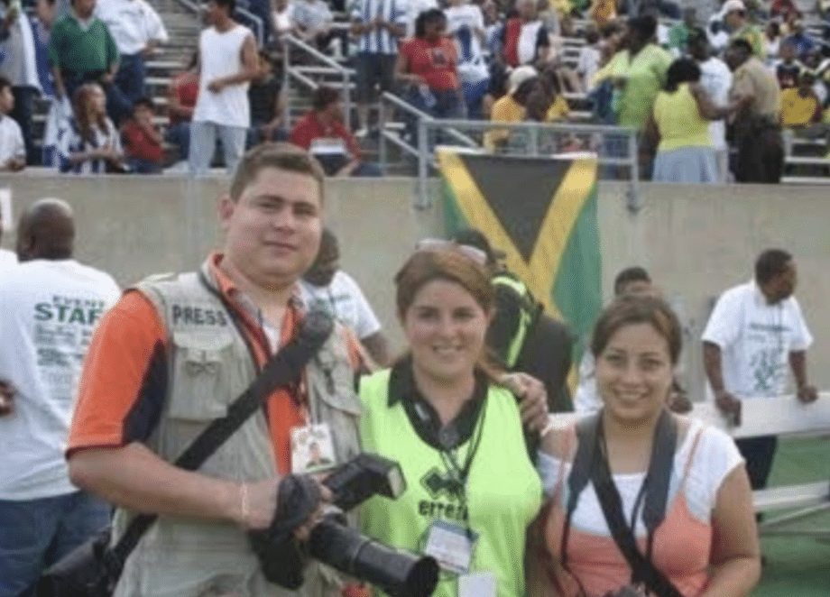 Mario Guevara (left) with Irene Diaz-Bazan (center) of Prensa Atlanta, along with a photographer, taken around 2010. Photo courtesy of Irene Diaz-Bazan, Prensa Atlanta