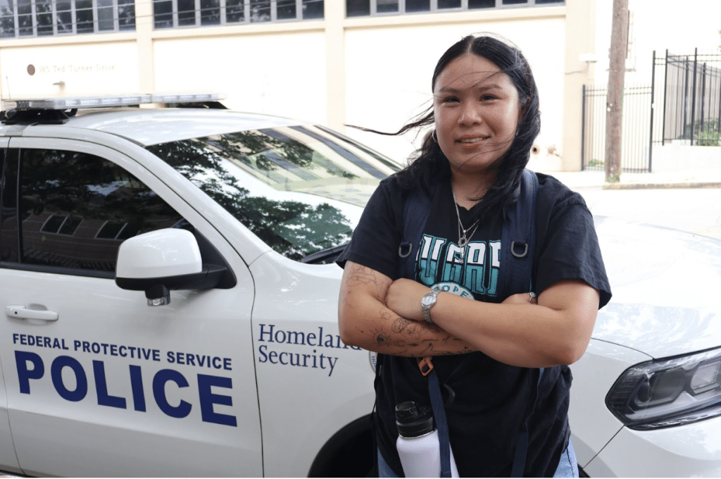 On a June morning, the line formed before dawn along tall wrought-iron gates on Ted Turner Drive. Most people carried paperwork, and some had children with them. They waited for immigration court dates and check-ins at the downtown field office of U.S. Immigration and Customs Enforcement (ICE), where people who’ve previously been detained or apprehended are required to meet with officers. Edna waited in line with her sister-in-law, Stephanie.