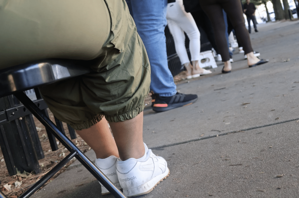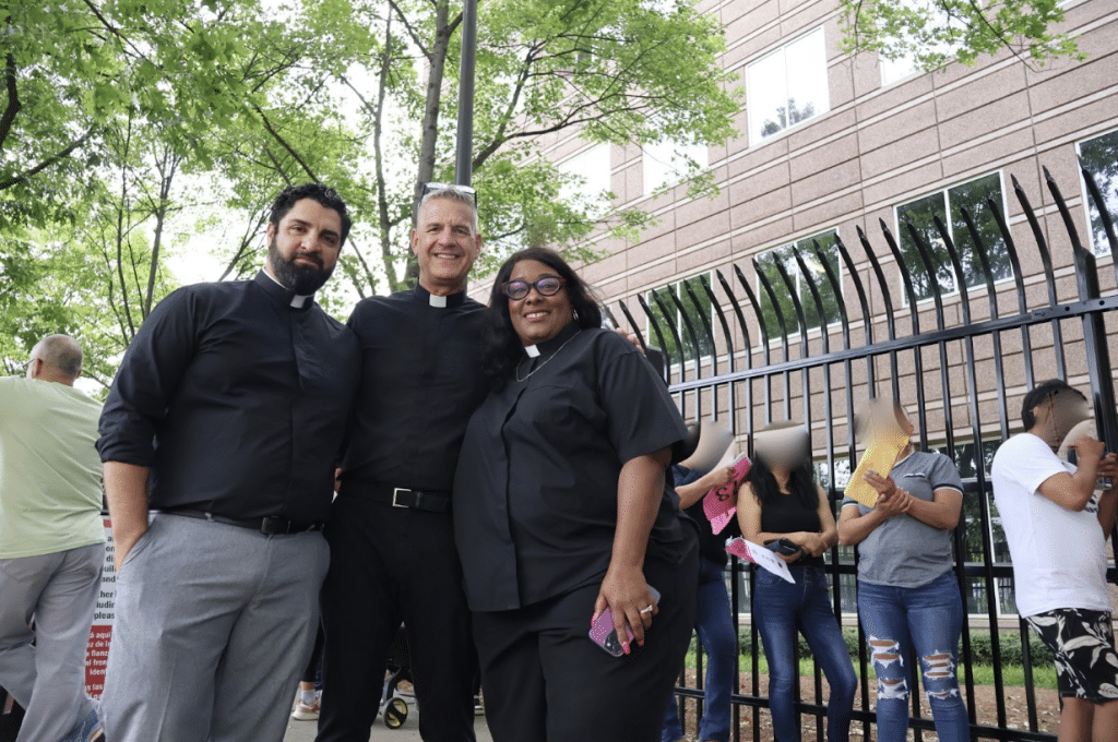 While some people lined up for check-ins with ICE agents, others were there to see an immigration judge. Some people wore GPS ankle monitors, signaling that they were participants in ICE’s “Alternative to Detention” program. Most enter immigration court without legal representation, and Compas at the Gates volunteers work “one-on-one to understand each person’s situation, connect with trusted attorneys for any complex cases, and maintain a calm, compassionate presence, always mindful of everyone’s privacy and safety,” Anton said.