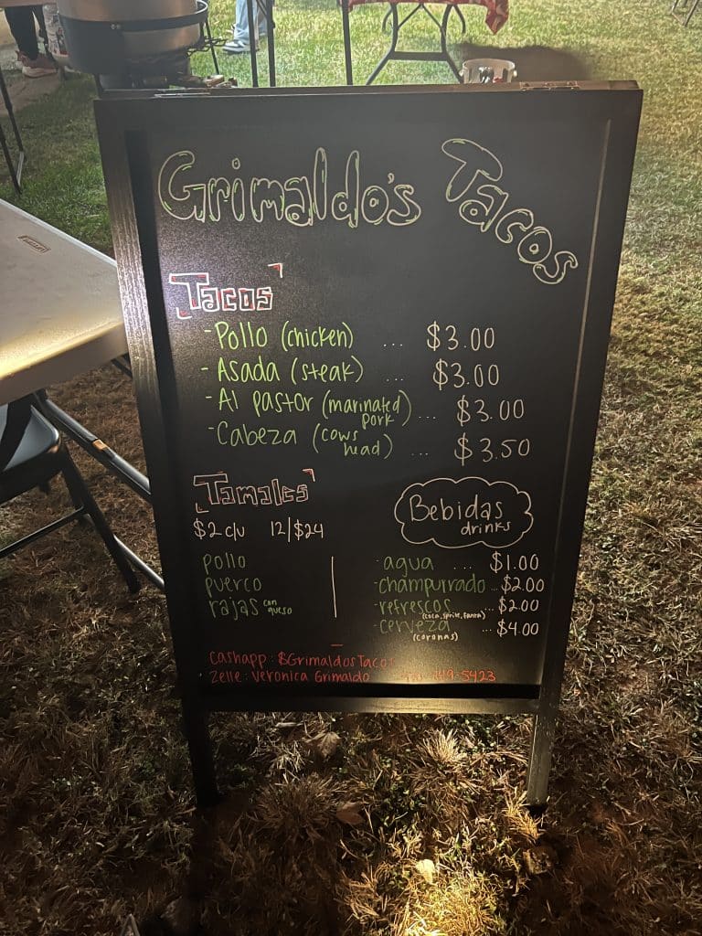 The menu board at Grimaldo’s Tacos. Photo credit: Liliana Alvarado