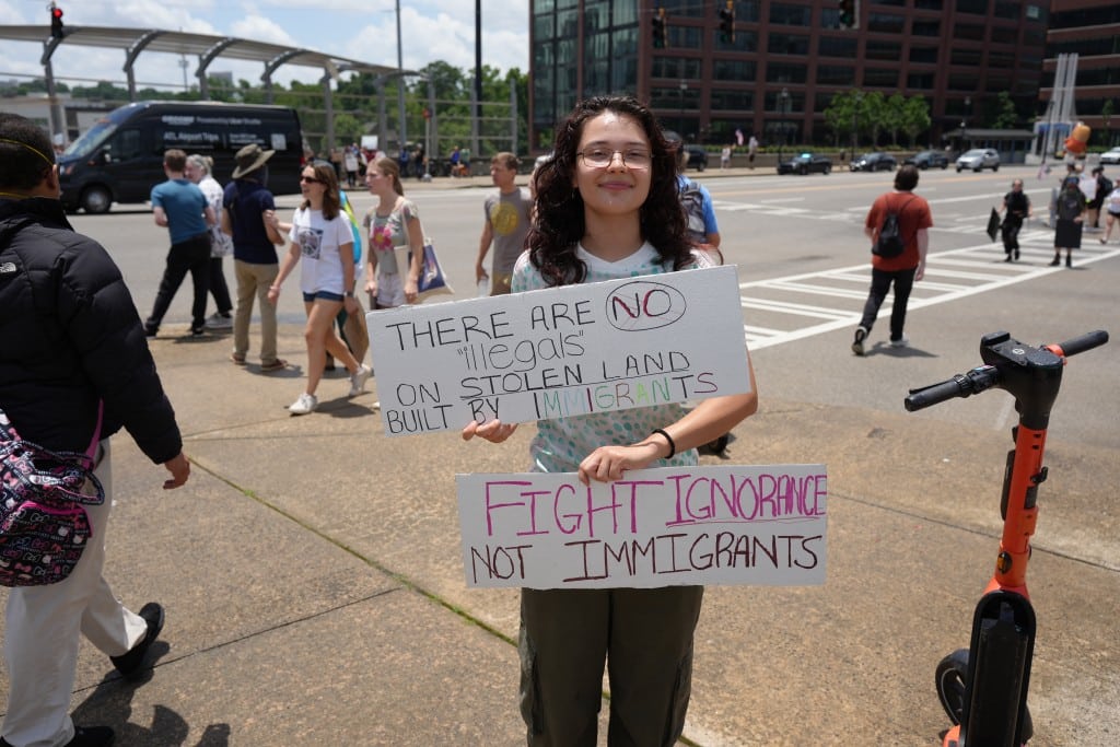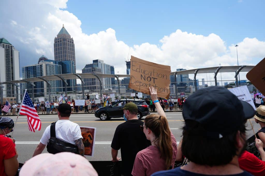 Valerie Davis, a student at Kennesaw State University, went to the protest in midtown to set the record straight about immigrants, she said. “In this political climate, there is a lot of misinformation going on about who immigrants are and what they bring to this country,” she said. “But at the end of the day, most, most immigrants come here because they want to live a good life. They want to live the American dream. That’s what this country was built on, the American dream, building, you know, a life for yourself and your family.