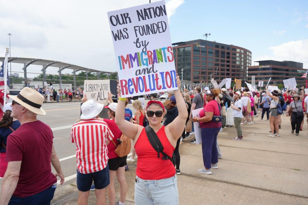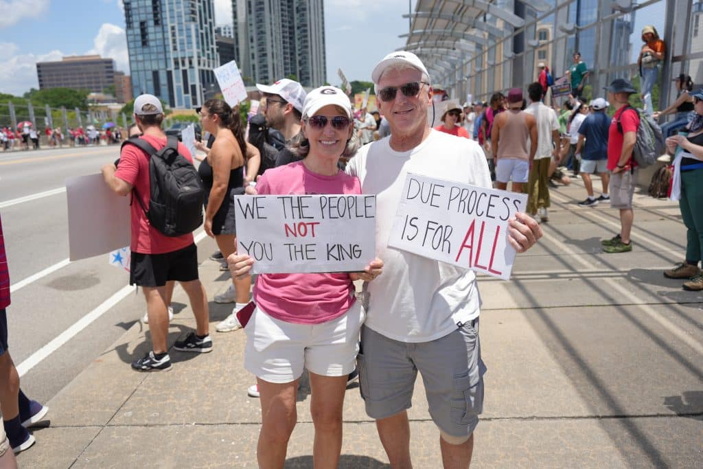 Thousands of Atlanta metro residents gathered on a hot and sunny Saturday for a “No Kings” protest taking place at the same time President Donald Trump was hosting a military parade to mark the 250th anniversary of the Army and his 79th birthday. In the morning, more than 5,000 people were at the Georgia State Capitol, joining dozens of other demonstrations across the state and the country.