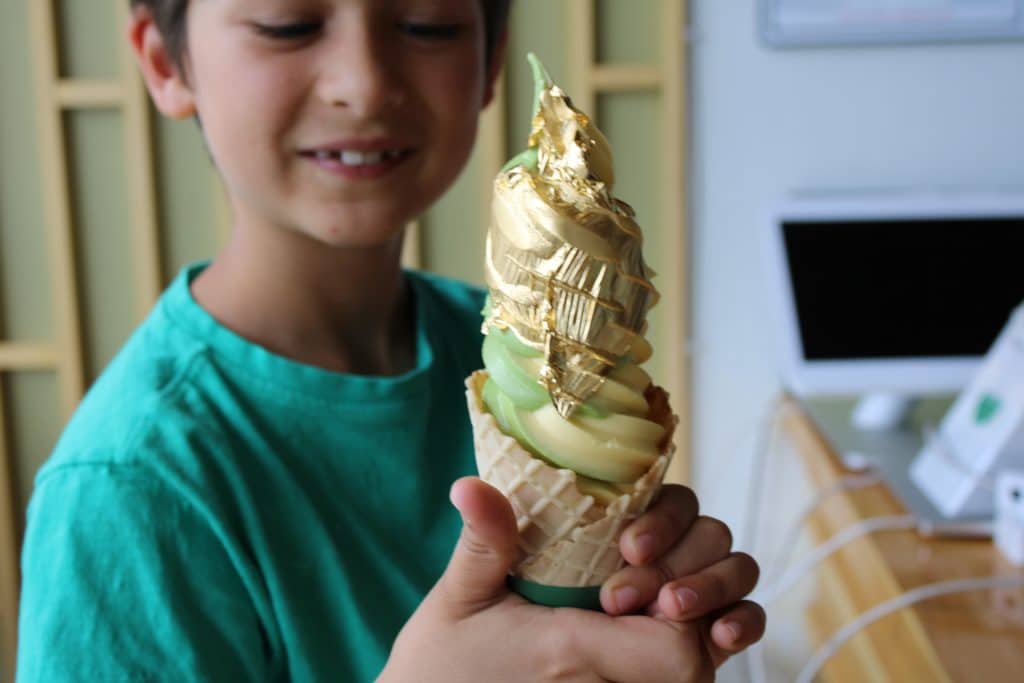 The 8-year-old patron eating a “Golden sho-gun” cone.