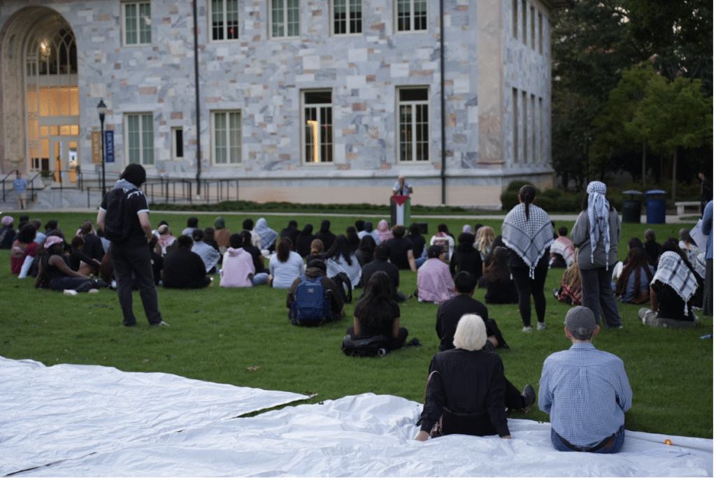 On Tuesday night, a crowd of about 70 people held candles on the Quad of Emory University to mourn the lives of those killed since October 7, when attacks on Israel by the Palestinian group Hamas ignited a regional war, now entering its second year. Organized by Emory Students for Justice in Palestine (SJP), the event served as a memorial service for the dead in Palestine and, now, Lebanon, where Israeli forces invaded earlier this month and have killed more than 2,000 people. That’s in addition to the tens of thousands killed in Gaza over the past year—in actions human rights advocates and legal scholars have said could constitute a genocide.