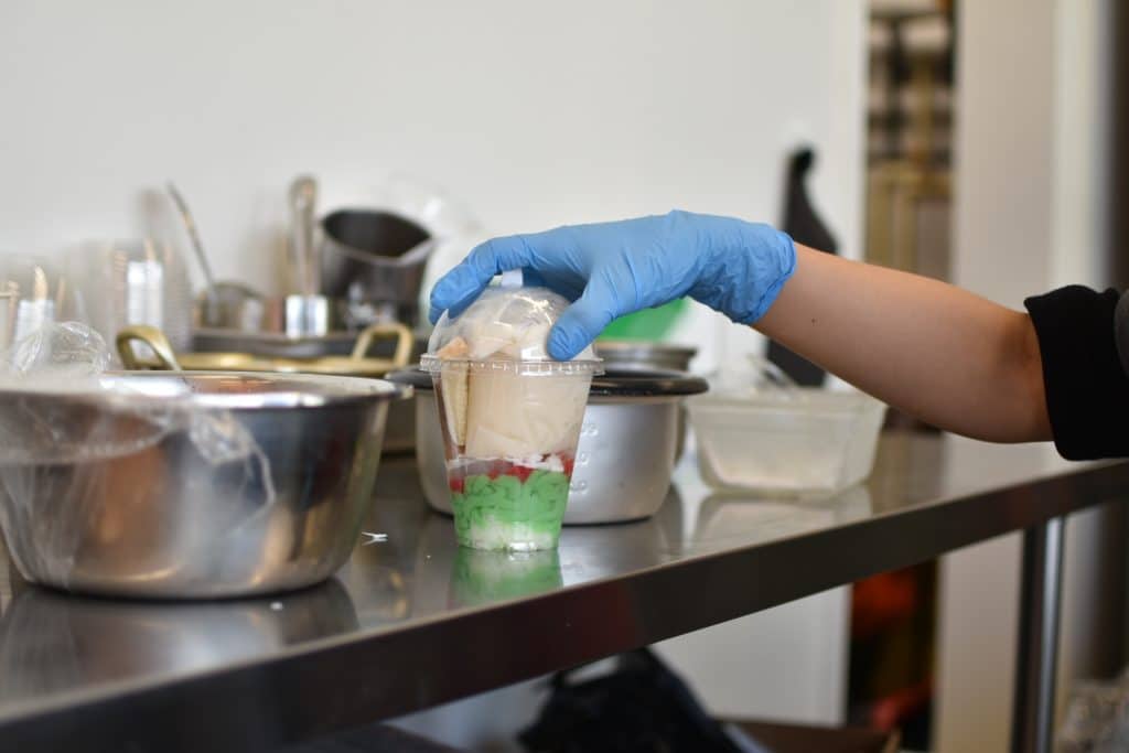 Victoria prepares shwe yin aye, a Burmese dessert made with pandan jelly, sago pearls, coconut milk, and sticky rice. Photo credit: Sam Worley
