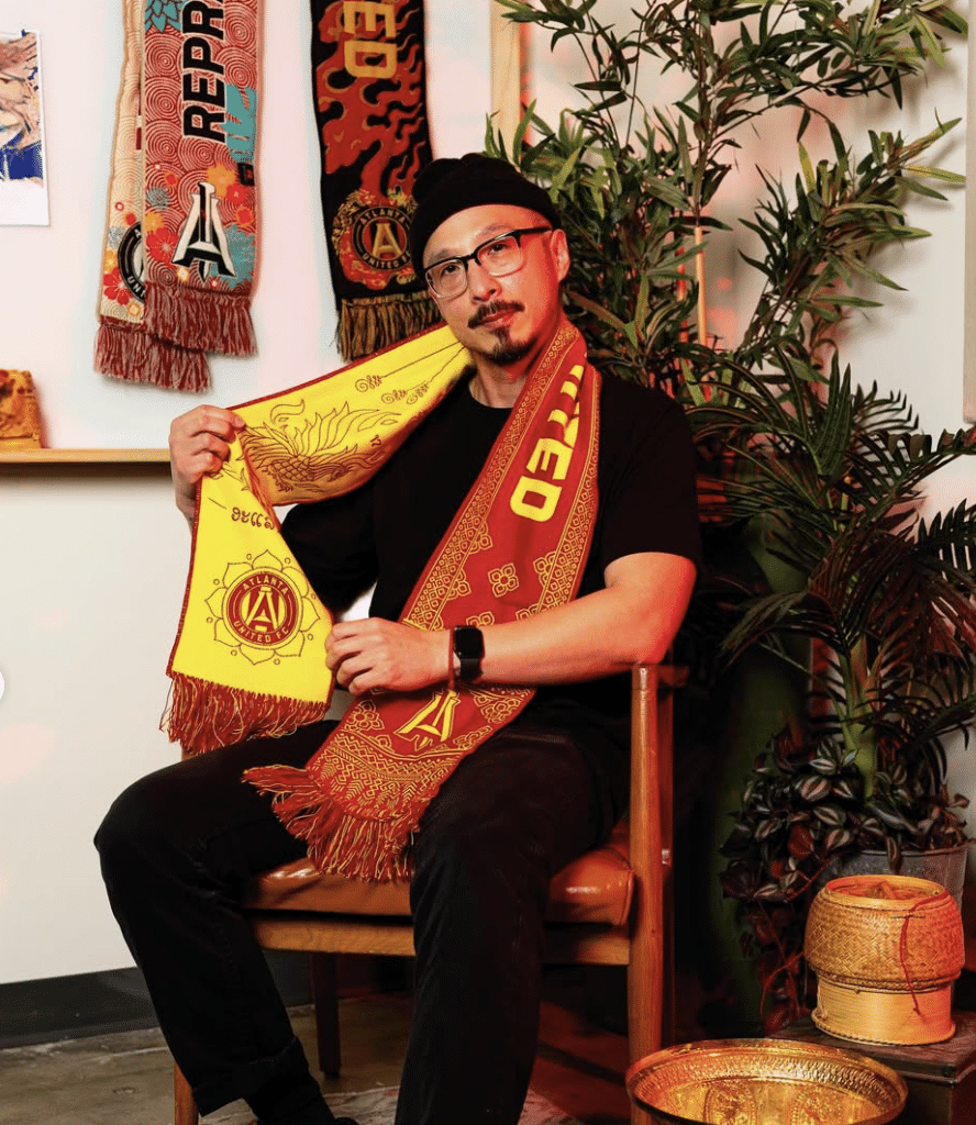 When Decatur-based artist Sanithna Phansavanh was asked to design an Atlanta United scarf to honor Asian American Heritage Month this year, he knew exactly where to look for inspiration: his mom’s closet.